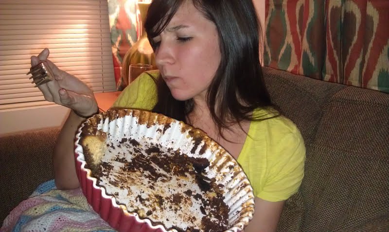 I could go on and on because it was sort of a baking catastrophe but this is about fall, not my pie. Good news is that other than the crust being basically rock hard...it was pretty dang good pie. So good that we only shared a bit with Kristen and Joe and ate the rest. Last night we were watching Grey's Anatomy (because that's all we really do these days) and we pulled out the pie. I looked down and it was gone. "We ate this whole freaking pie by ourselves", Chris started dying laughing, took a picture, and told me to blog about it. So I am. (Side-note: I would just like my family to know that I hardly ever have rocket out but I was not feeling great this week and husband allowed it. For those of you that are confused, Rocket it my baby blanket and yes I know it is sad that I still have it.)